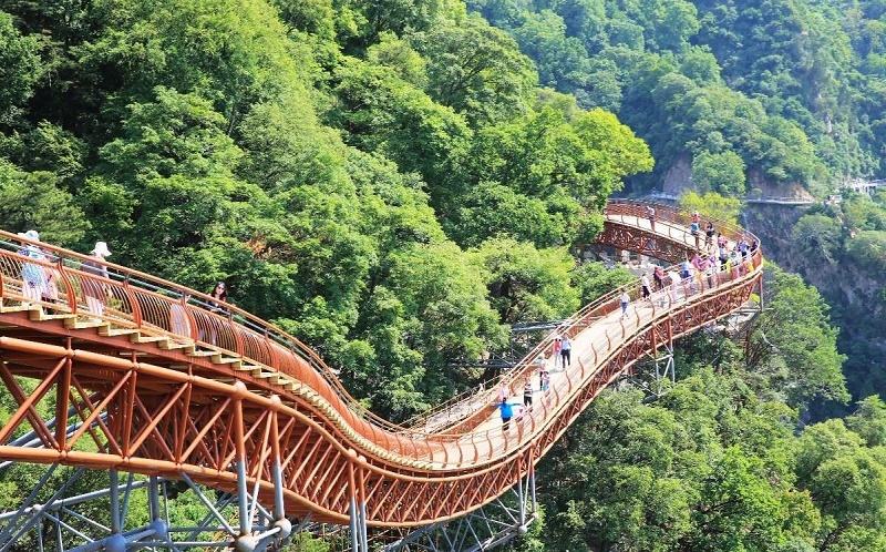 09:00左右抵达【少华山森林公园】,抵达后换乘景区交通进入景区。开始欣赏景色秀丽,植被茂密,溪流潺潺,人称”陕西的九寨沟”的少华山,挑战1600M高空的玻璃栈道(需乘坐索道,自费往返130元/人,优惠价100元/人),后前往【石门峡景区】,看溪水潺潺,体会夏日清凉,在这里爱情树“柏抱槐”虽已两千多年,但仍生机盎然,枝叶繁茂,柏高槐低,各显风姿。自理午餐,丰俭由己。