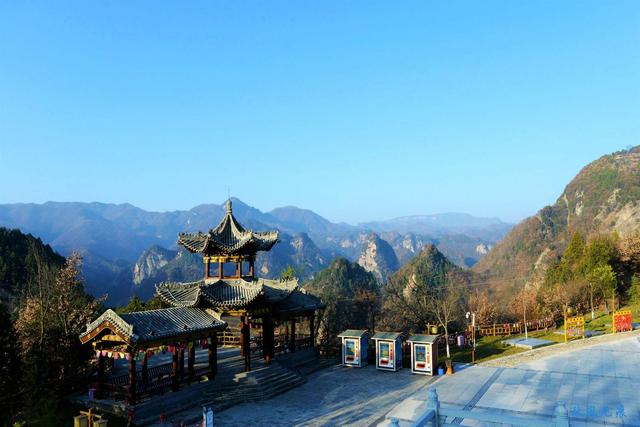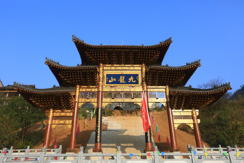 11:30左右游览【九龙山风景区】地处宝鸡县新民乡境内。远望九峰汇集,状如莲花盛开,形似九龙腾空。相传,唐贞观年间,长孙皇后回香泉探亲后,返京路过皇后岭(今新民乡王家嘴村三组)时,望见九龙山云蒸霞蔚,宛若仙境,乃赞不绝口,回京后奏告太宗。唐太宗遂命爱将尉迟敬德在九龙山监修庙宇,祈望风调雨顺,国泰民安,留下了这独秀关陇的九龙山八景。自理午餐,丰俭由己。景区道路全长13.2公里,占地面积约30平方公里,整个自然风景区属陆相沉积岩,即为典型的丹霞地貌。景区内峡谷纵横,奇峰怪石嶙峋,潇水河从峡谷中缓缓而流,素有“西北小三峡”的美誉。可乘坐索道(自理70元/人往返)前往九龙山玻璃栈道(如不坐索道,可自由爬山约2小时),新建西北最长280米高空玻璃悬索桥。